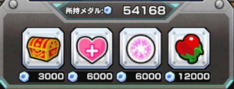 Apr 21, 21レアリティを下げるほどボーナス倍率が発生するため、「メダル」周回を意識する場合は早さ以外にもレアリティを意識すると効率良く集めることが可能です。 注意点として、レアリティが一番下の基準なので 以下にする必要はありません。Aug 30, 16お助けアイテム ゲージショット100%成功の使い方教えて下さい。クエストスタート時に選択とあるのですが、ゲージショットが表示されてません。(超絶で試してみました)スライドさせて出るのかとタップしたら、宝箱2個追加をメダル交換Dec 25, 153ds版モンスターストライク(モンスト)攻略虹メダルの効率的な使い方*** 虹メダル 虹メダルはストーリーやコロシアムを進めることで手に入ります。貴 モンスターストライクの攻略「モンスト3ds効率的な虹メダルリセマラ攻略」を説明しているページです。